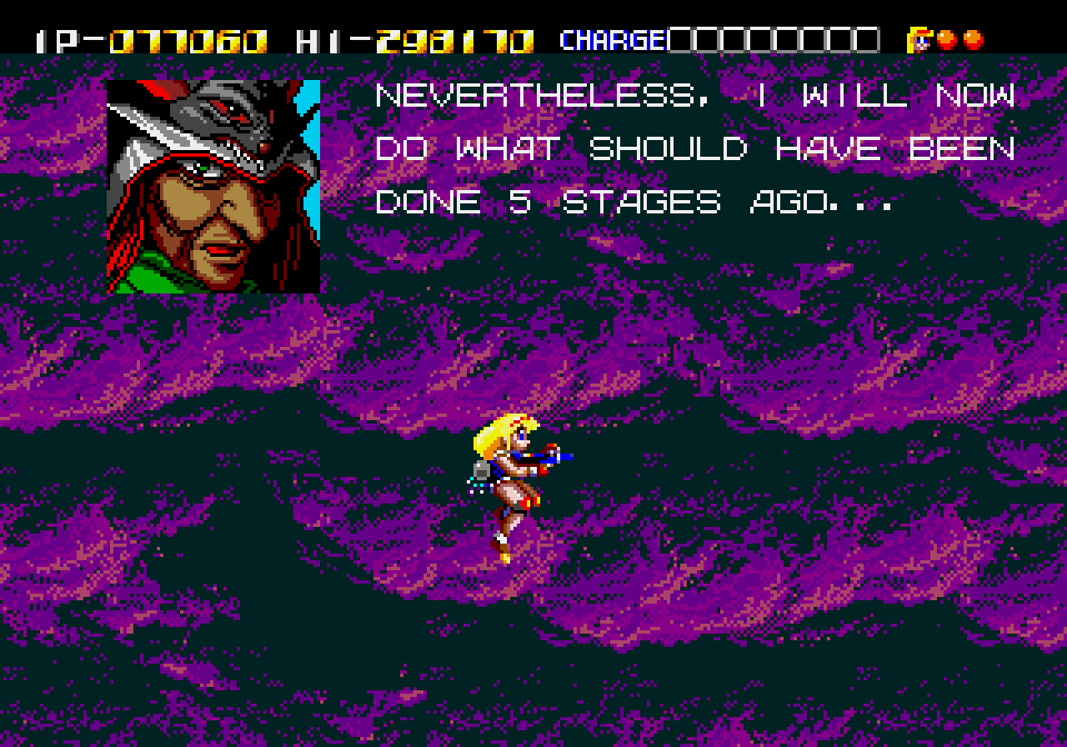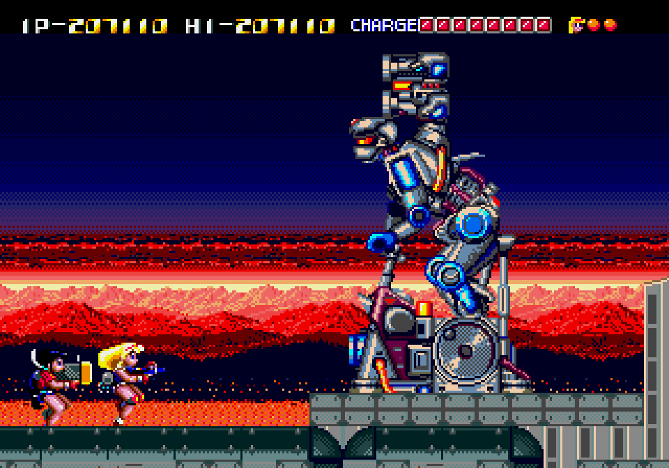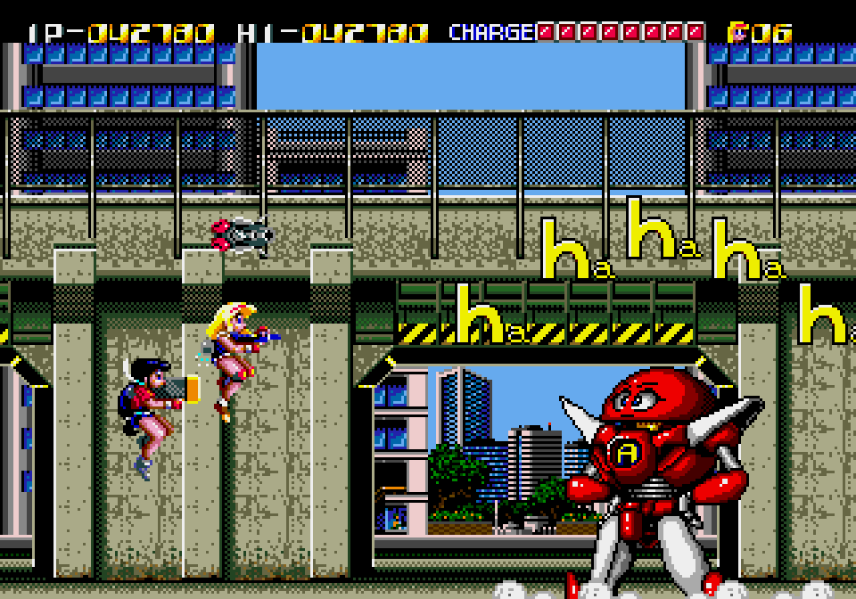 As a former teenage weeb turned adult weeb, I feel like there's no better game system for people like me than the Sega Mega Drive. PC-Engine comes close, but I'm giving the Mega Drive the edge because I grew up with it as a kid, and as I got older, emulators were a lot better than what the PCE had on offer (I didn't know how to steal Magic Engine). In any case, the Mega Drive always seemed to have something that appealed to anyone obsessed with anything that was even remotely anime, including multiple licensed anime titles, as well as stuff that looked like it was based on some obscure series; stuff like Vixen 357, and the game I'll be talking about today: Battle Mania. Battle Mania, or Trouble Shooter as it was called here in the States (I will be calling it Battle Mania for the rest of this piece), is a hell of a game by an odd developer: Vic Tokai. Vic Tokai are mostly known for Clash At Demonhead and Golgo 13 on the NES, and also known for me being a stupid kid and thinking that Vic Tokai was literally just some guy named Vic and not a major telecommunications company that is still in business today. They didn't develop or publish any other shooters besides Battle Mania and its sequel, which is odd given the quality of these games, you would think Vic Tokai would want to really get in on the shooter craze of the late-80s to mid-90s. So what makes this game so special, especially compared to so many other heavy hitters on the Mega Drive? A lot of things, actually. The first thing is the amount of charm and personality on display at any given moment. A lot of shooters tended to be either a spaceship fighting aliens, or a dude with magic powers fighting medieval fantasy creatures. Battle Mania gives us something different: girls. Specifically, two bounty hunters named Madison and Crystal. Not only that, but you play as both of them at once, with Madison being the one that gets the weapon upgrades, collects the power ups, and takes all the damage, while Crystal acts as a human version of an STG satellite (ala other classic shooters such as Gradius). Another thing that sets this game apart is that with a button press, you can direct Crystal to either shoot at threats behind the two girls, or in front, doubling the fire power against larger enemies. It's a small thing, being able to adjust your fire on the fly, but it adds so much. The main thing that sets Battle Mania apart from other games is that it's very lighthearted. Lots of sight gags and fourth-wall humor. It does not take itself seriously at all, and features jokes that are actually pretty good, especially considering the time period, where you were lucky to even get a coherent sentence. This is what makes Battle Mania what it is. See, games tend to be fun; you turn on the game, press some buttons, and enjoy yourself the whole time. Sometimes, though, you get a game that is fun fun. A game that you enjoy beyond what you do with the controller. With the lighthearted atmosphere, the bright colors, the jokes that are actually funny why is it so hard for games to actually be funny, Battle Mania is a good game before you get into all of the mechanical things that make games good. Like, yeah, the shooting is fun and the levels are well made, but there's something that I love about this game where two girls with guns defeat an ancient evil and it's all in a day's work, another day at the office. It's like an anime OVA, only without the cool ultraviolence and brief nudity, but it's somehow still really cool despite that. One more thing, hold start on the player two controller before turning on the Mega Drive, and you get this little scene (only in the Japanese version):It's Madison stomping on a Super Famicom. Battle Mania's producer was pretty pissed about Vic Tokai always giving a higher budget to Nintendo games over Sega ones, so he had this put in.