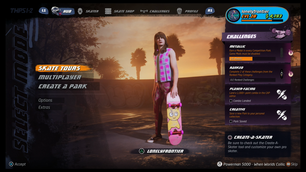 My thoughts on the Tony Hawk remasters are that they fucking own. Something I don't talk about much, because the topic doesn't come up, is that Tony Hawk 2 is one of my absolute favorite PSX games, and probably one of my favorite games ever. I was also a bit wary, not going to lie, because this would have been the third PSX game getting remade for the PS4 that I was getting, after Resident Evil 2 and Final Fantasy VII. Great news, unlike those two games, Tony Hawk 2 was not fucked with. It is exactly what it claims to be: Tony Hawk 1 and 2 with some extra stuff. Extra music, extra skaters, all sorts of cool new shit added to the custom skater and custom park modes.