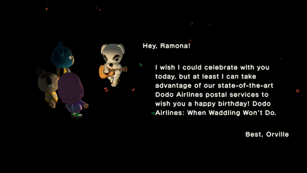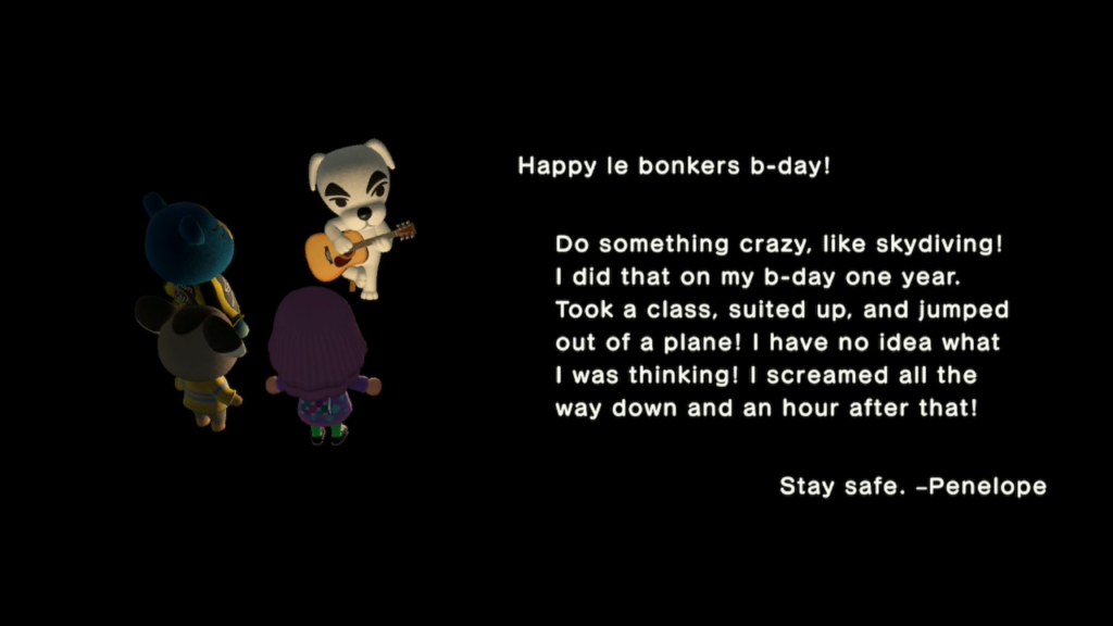 K.K Slider holds a special concert for you! That's cool! And as this happens, various villagers leave these sweet messages for you.