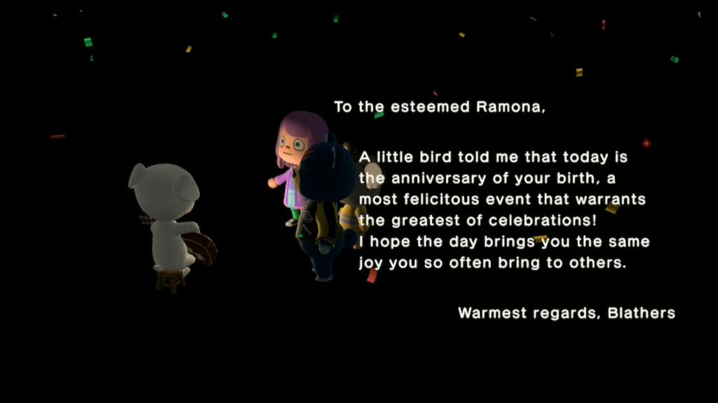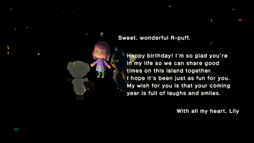 I also wanted to check out my Animal Crossing town before I left the house. I wanted to see what was in store for the Birthday Bitch.