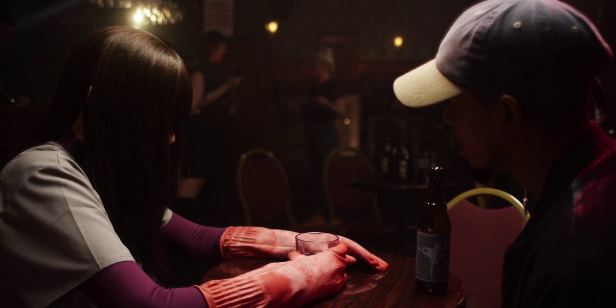 The other half of the film involves a robot named Grace, sitting alone at a bar until a young man named Rudy approaches her and begins a conversation. At first, Grace just seems like the movie's infodump; she introduces us to McAbee and the Romantic Sciences, as well as the numerous copycats that have sprung up with their own concepts of the Romantic Sciences, but Grace does come into a character all her own eventually. Grace is at this bar to try and understand humanity a little more. You see, she is about to be sent to space as a representative of humanity, and she's worried she doesn't have enough data to properly represent the Earth. The thing about Grace is that her understanding of people is through her programming, where she receives every person's text messages and social media posts the moment they are sent. I don't think I need to tell you why that's bad. Her conversation with Rudy will determine whether or not she's actually ready for her mission.