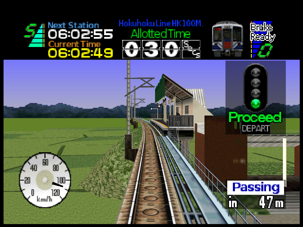 I need to let you all know something: Densha de Go! is really, really, really fucking hard. All those remarks you hear thrown at stuff like Dark Souls? Forget it. Trying to hit the brakes and stopping at the exact right moment to drop off and pick up passengers is the stuff of nightmares. It's extremely stressful managing time tables, being able to match speed limits in a matter of seconds, and making sure you aren't jostling a train full of kids and Salarymen all over the place. Don't go into this expecting something really chill; you're here to do a job, and you're here to do it well, since Japan's entire economic workforce is literally relying on you.