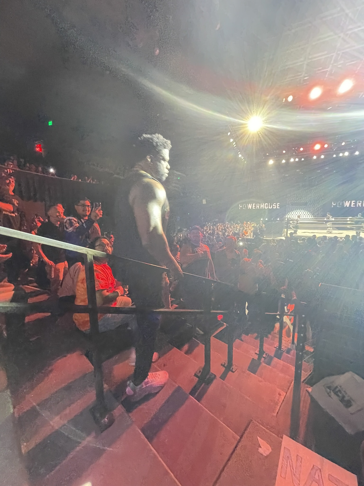 Oh, and I was right next to Powerhouse Hobbs when he came out to answer Max Caster's Five Minute White Boy Challenge. You can see me snap this picture and then give a big thumbs up on TV.