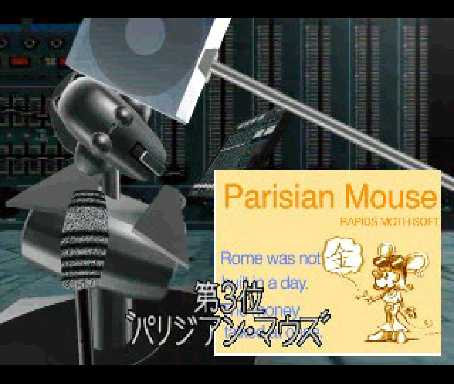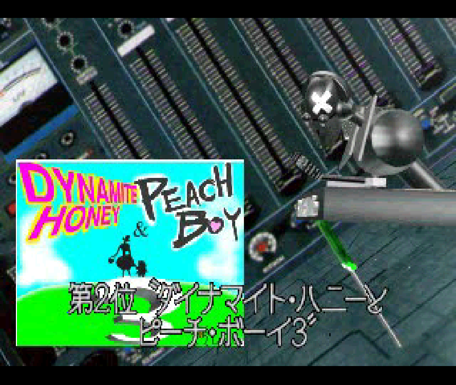 One of these games is called Meta-Ph-List. Before I talk about the game, I feel like I need to talk about the developer. Meta-Ph-List was developed by a company known as A.D.M Co. If the MobyGames credits are to be believed (and I don't see why they wouldn't be), Meta-Ph-List is their one and only game. For most of the dev team, this title is their one and only experience in games. On the surface, it's not a particularly unusual game. It's a vertically scrolling space shooter, one of the most common gaming formats there is. But this is an obscure Japan-only Playstation game by a team that's never made a game before or since, so there won't be anything too "common" about it. Meta-Ph-List kicks off in a such a way that it immediately endeared itself to me. A minutes long, fully animated CG intro where a robot radio DJ (played by actual Japanese radio DJ Chris Peppler) reads off a top five list of hot new games released across the galaxy, Beard Landlord, The Highest Dreamer, and Parisian Mouse (developed by members of a rival game studio that were lured over with money and sex). Can't forget about Dynamite Honey and Peach Boy 3, a game where, quote, "a woman with a hot bod and low self-esteem straps 500 dynamites to her body." I need Dynamite Honey and Peach Boy 3 in my life. Dynamite Honey and Peach Boy 1 and 2 would also be nice. Of course, the number one hottest video game in the entire galaxy is Meta-Ph-List. The DJ also helpfully informs us that Meta-Ph-List is not a "Bang Bang," but a "Think Think." Despite being a game for the Thinking Man, I believe the developers should have had more confidence in themselves instead of comparing their game to Knuckles' Chaotix. I should also point out that this intro has absolutely nothing to do with the game's plot at all.