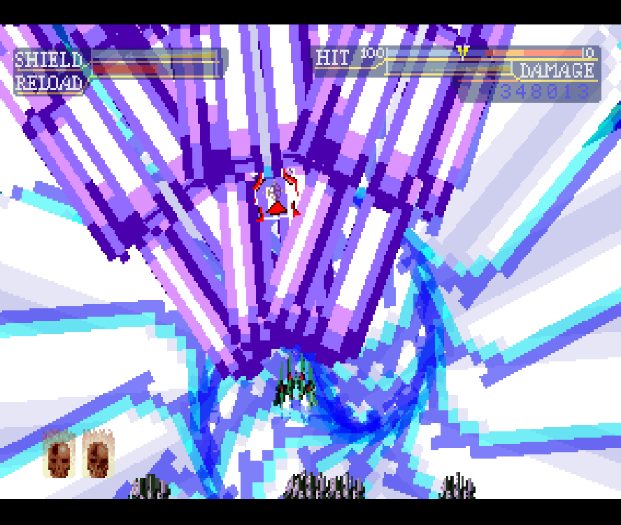 Meta-Ph-List looks fairly normal on the surface. But sometimes, levels just end. They end randomly. You might be in a level for about 60 seconds before flying away, or you might actually fight a boss, then hang around fighting more enemies for a little while. All set to music that sounds like it would play in the background of an episode of Ultraman or the original Mobile Suit Gundam. Meta-Ph-List also features mild RPG mechanics, which means your weapons get stronger the more you use them. There are also some temporary power-ups to increase the size of your bullets and missiles. In addition, you have access to very powerful bombs. The most powerful screen-clearing bombs you'll ever see in a shooter. This leads to a lot of times where you cannot see a fucking thing on screen because of all the projectiles you fire off.