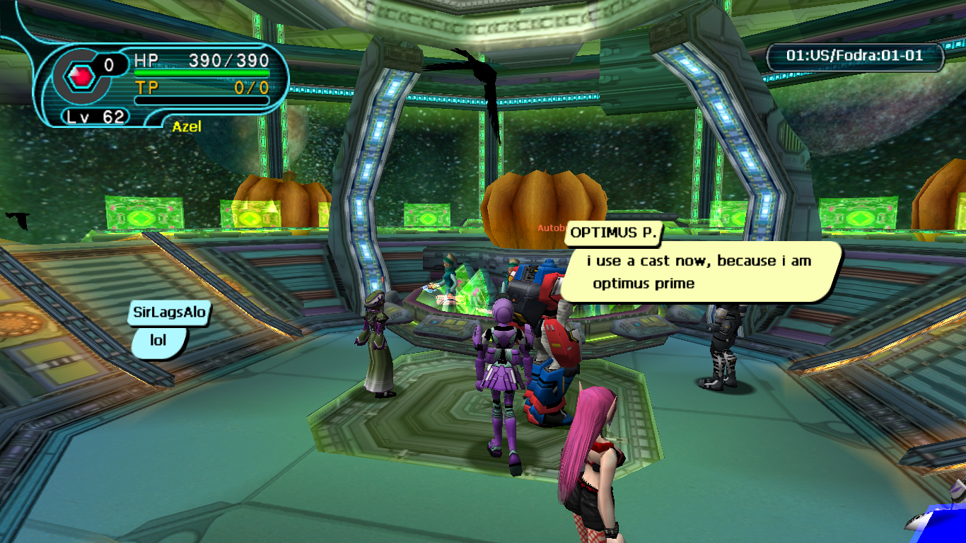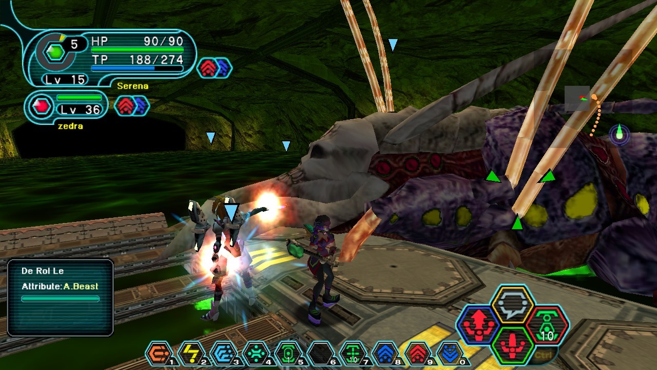 Despite that personal bull shit, PSO rules. It is the only MMO I can stand, as I'm not a big fan of the genre. Yes, that includes that game; the Fantasy one with the obnoxious meme that makes me delay resubscribing another month every time I hear it, so if you want to play Final Fantasy XIV with me, you'll have to wait until the year 2172. Anyways. The reason I like PSO so much is that it plays like an actual game. You press the attack button, and you attack. You don't sit through a canned animation after clicking on your 30th Giant Rat. It's possible to dodge attacks! You don't have to simply stand in place and eat shit until your cooldown periods end. Stuff happens, and it's actually fun. You go out into dungeons, fight monsters until you reach a boss, then come back with all the gear you got. Then you equip this gear, so you can go back into the dungeons, get better gear, get better abilities, take out the massive boss at the end quicker, and repeat until you can do this on the hardest difficulty. Sounds monotonous, but can be hours of fun with the right people.